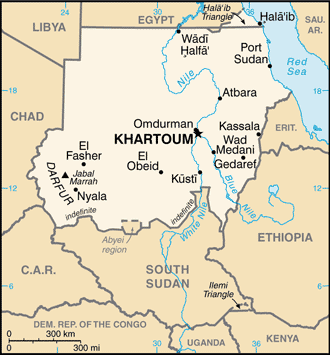 Neighbours (border lengths): Central African Republic (175km), Chad (1,360km), Egypt (1,273km), Eritrea (605km), Ethiopia (769km), Libya (383km), South Sudan (1,946km)