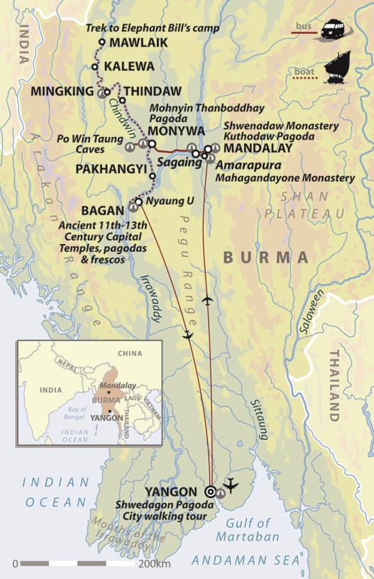 from £3695 excl. flights* An enigmatic land of golden pagodas and mist-shrouded jungle, Myanmar was once described by Rudyard Kipling as a place 'quite unlike any...you know about'. It was into this timeless landscape that a young man by the name of James Howard Williams arrived in 1920, to take up a post with the Bombay Burma Trading Corporation.Over the next 25 years this remarkable individual lived a life straight from the pages of a 'Boy's Own' adventure story, going on to earn himself the moniker of 'Elephant Bill' and eventually leading a dramatic exodus of elephants and refugees across the Burmese highlands into India.Following in his adventurous footsteps we journey by river into the jungles of the Upper Chindwin Valley, travelling into some of Myanmar's most remote landscapes. We'll take in the cultural highlights of Yangon, Mandalay and Bagan and sail into the very heart of Burma's ancient teak forests; journeying to the northern reaches of colonial Burma, where J.H. Williams began his remarkable story. |