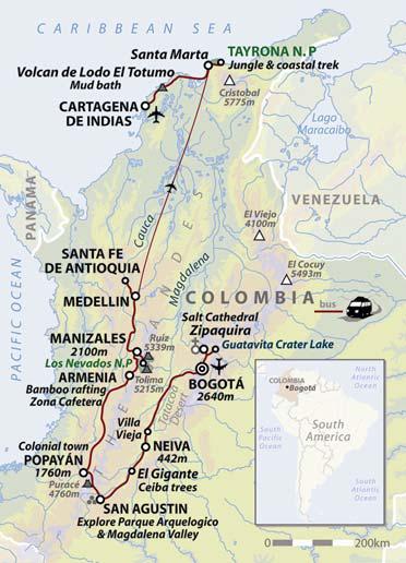 from £4495 excl. flights* Vibrant Colombia is a land of contrasts and legends, an entire continent encompassed by one country. After being off the travel map for some time, Colombia is now moving back into the spotlight as an exciting travel destination. Ranging from palm fringed Caribbean beaches, snow-capped Andean mountain peaks, desert, verdant rain forests and National Parks, Colombian terrain is truly diverse. From the cosmopolitan metropolis of Bogota to the cobbled alleys of the colonial towns, we will explore all aspects of the country and indulge in a multitude of activities, from bathing in mud volcanoes to trekking in Tayrona National Park. Taking in the spectacular underground salt cathedral at Zipaquira, Los Nevados National Park, the bizarre rock formations of the Tatacoa Desert, and the UNESCO World Heritage Site of San Agustin, there will be plenty of opportunity to experience the real Colombia and venture off the beaten track, meet the warm and hospitable locals and have a truly memorable trip. |