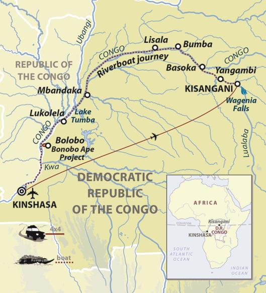 from £6295 excl. flights* “...the tranquil waterway leading into the uttermost ends of the earth flowed sombre under an overcast sky - seemed to lead into the heart of an immense darkness.” And so ends Joseph Conrad’s classic story of Marlow’s journey into the heart of the Belgian Congo, a land of matchless beauty, whose recent history is a tale of colonial brutality and wasted promise. Retracing some of the remarkable journey undertaken by Henry Morton Stanley in 1874, we follow that same river into Conrad’s ‘Heart of Darkness’, undertaking an adventure that will take us along some 1,000 kilometres of one of the greatest rivers on the African continent. During our days here we will explore something of the chaotic vibrancy of Kisangani and Kinshasa and travel into the forests of the Congo to visit the Bonobo Ape Project at Bolobo. We will also journey by boat down the great river itself, an odyssey of some 2-3 weeks that will see us following Stanley’s epic adventures into legend and infamy. The river is the very life force of this land, carving its way past dense rainforest and remote villages, where fishing pirogues and heavily laden barges ply their trade as they have done for generations. The river is the Congo, and this remarkable journey presents us with one of the last great adventures left in Africa. |
