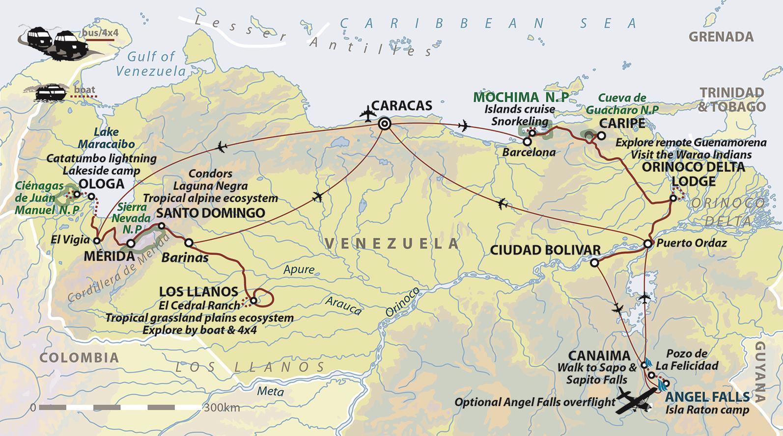 We have carefully selected the following organised group tours from the world's leading adventure travel companies to offer you the best experience of travelling to Venezuela. For convenience, we have organised these into country-wide tours and (where available) regional tours, trekking itineraries and multi-country overland tours incorporating Venezuela. For further details and to book your tour, click "details & booking" to visit the tour company website.