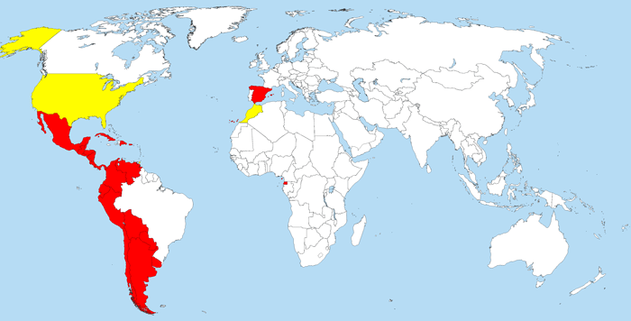 Welcome to the Spanish language page on Frontiers of Travel where you will find resources to help you speak and communicate on your travels. Spanish is spoken as a primary language in Argentina, Belize, Bolivia, Chile, Colombia, Costa Rica, Cuba, Dominican Republic, Ecuador, El Salvador, Equatorial Guinea, Guatemala, Honduras, Mexico, Nicaragua, Panama, Paraguay, Peru, Spain, Uruguay, Venezuela, Puerto Rico and is spoken by a significant minority in Andorra, Morocco, Trinidad and Tobago, United States of America, Aruba, Cayman Islands, Netherlands Antilles, Saint Martin, Virgin Islands, Curacao, Sint Maarten, Gibraltar.