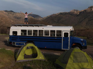 After spending several years travelling the world and working as tour leaders, Natalie Morawietz and Dave Patrick decided to set up their own overlanding company. Realising that the vast open spaces and natural wonders of North America were ideally suited to overlanding, they chose to focus on western USA. And to bring a particularly American feel to thier company, they bought a classic old yellow school bus and repainted and refurbished it into a spacious and fully equipped overlanding truck, named Atka (right).