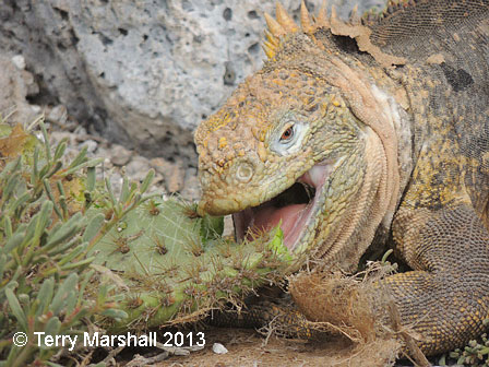 South Plaza is one of the smallest of the Galapagos Islands, one of a pair of islets just east of Santa Cruz. It has one of the largest populations of land iguanas, as well as marine iguanas, sea lions, swallow-tailed gulls, frigate birds, shearwaters, brown pelicans, blue-footed and masked boobies. There is a trail through the island's cactus forest to view the wildlife.
